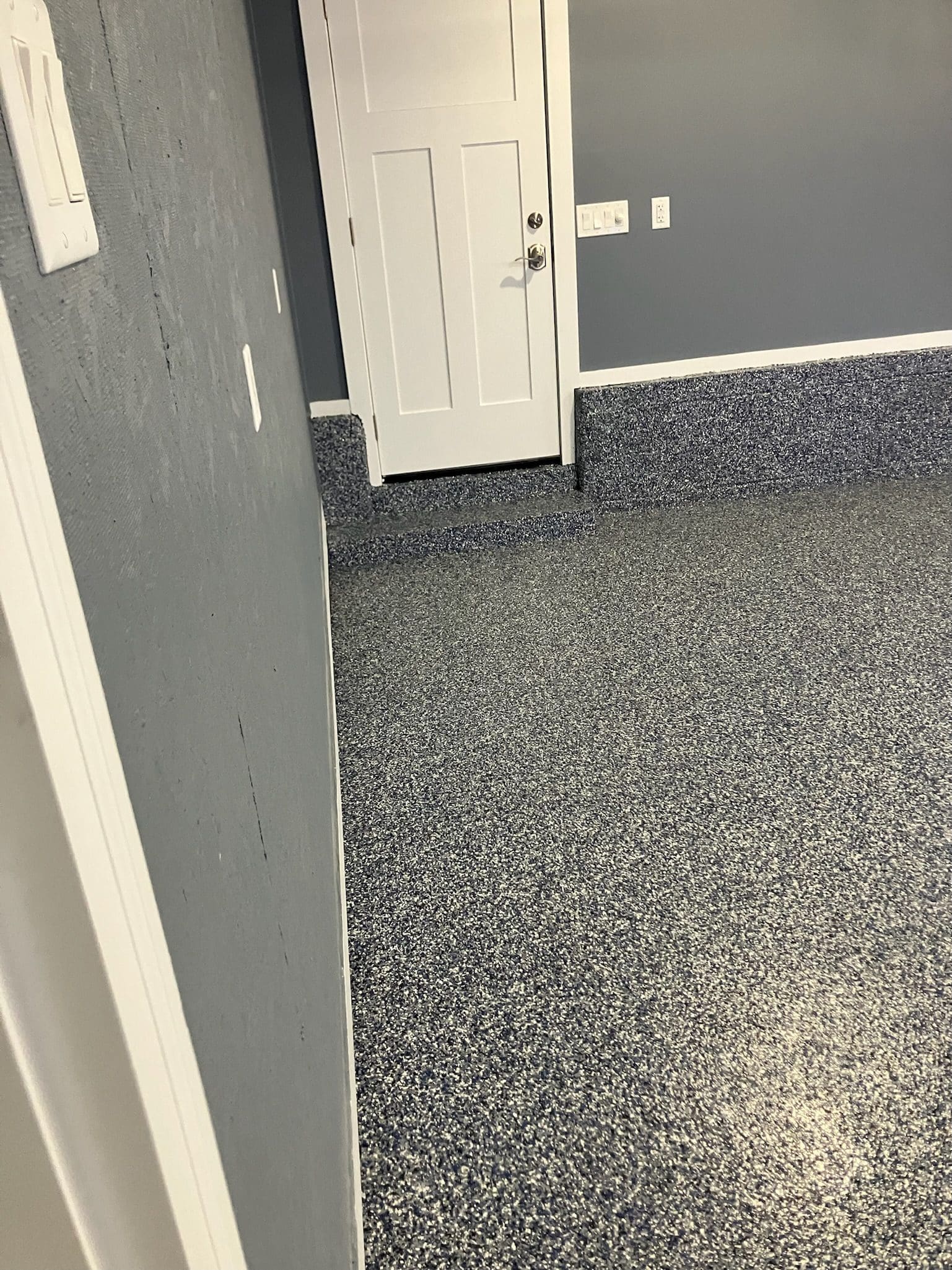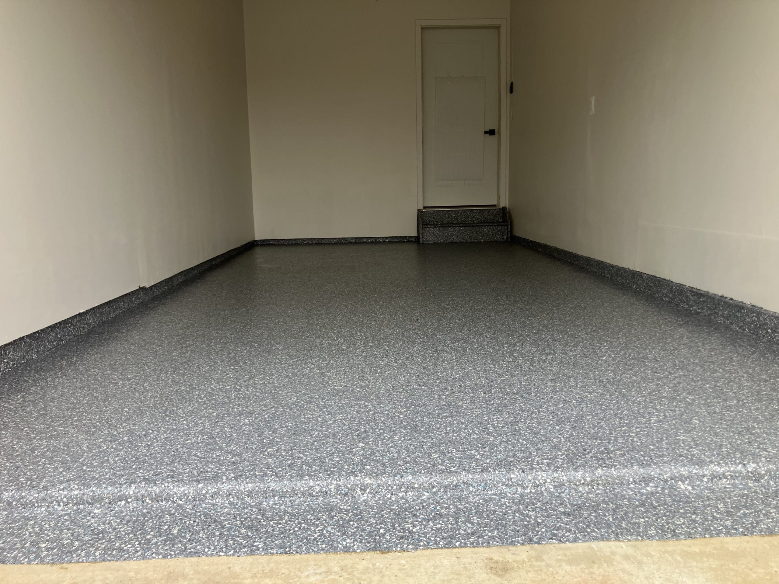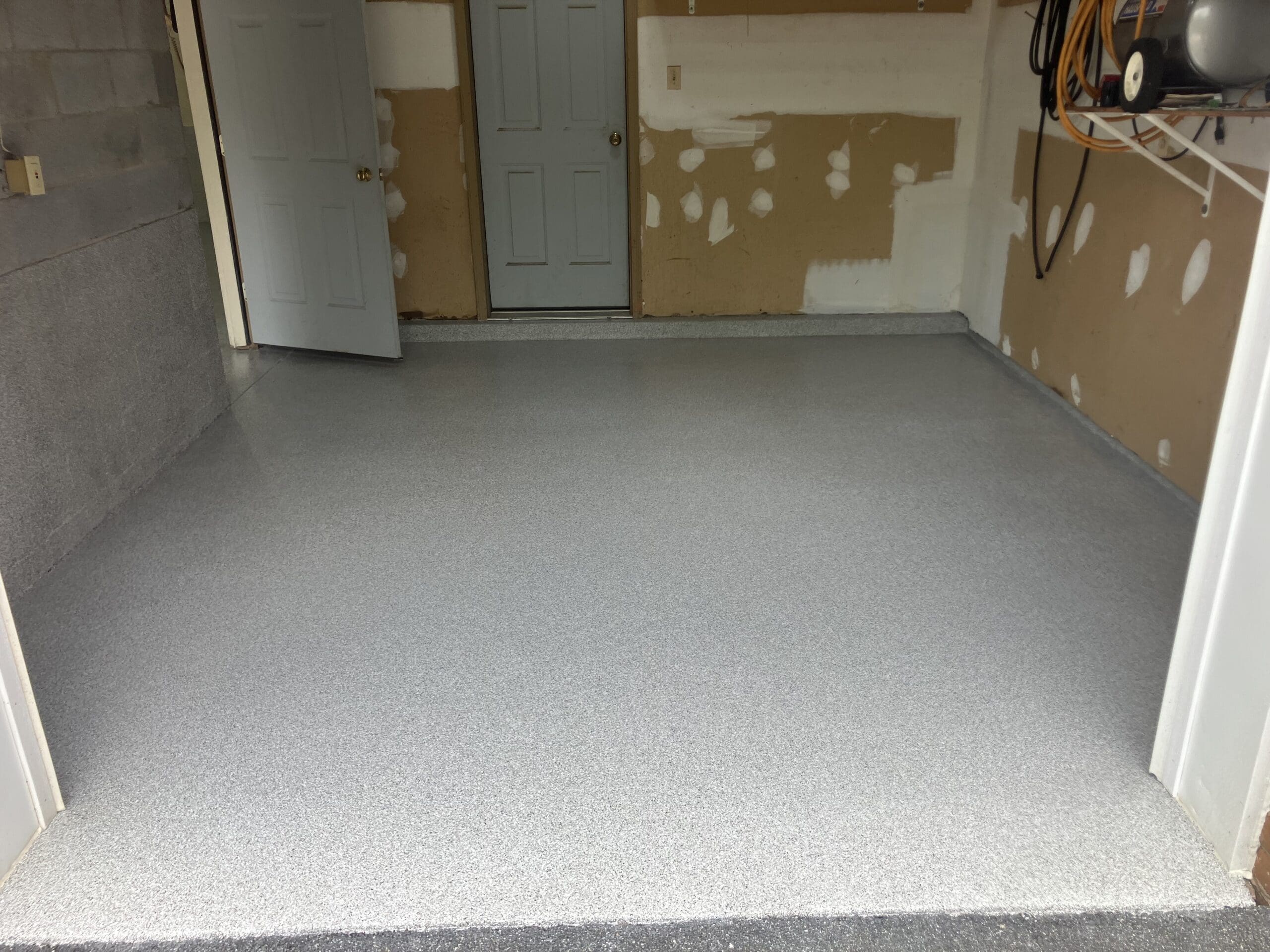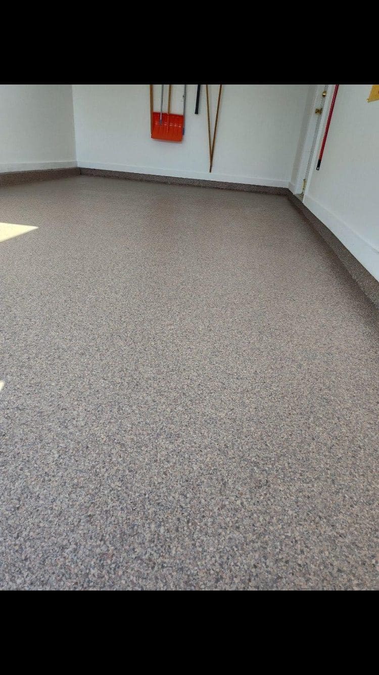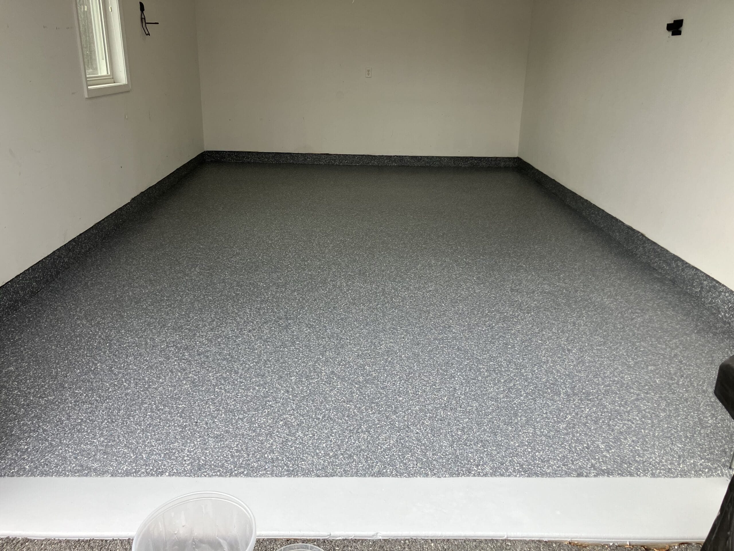 1/4" neutral gray flake with 6" cove storage room
