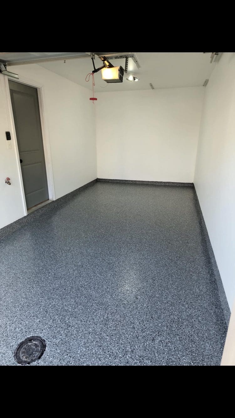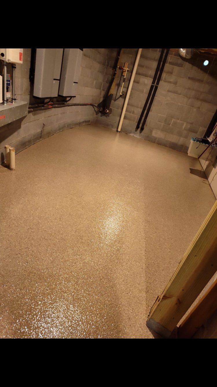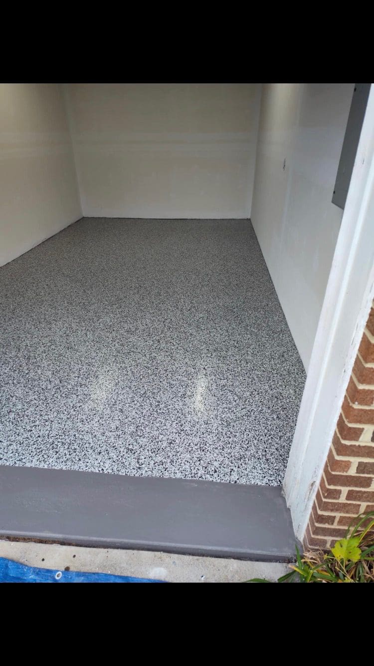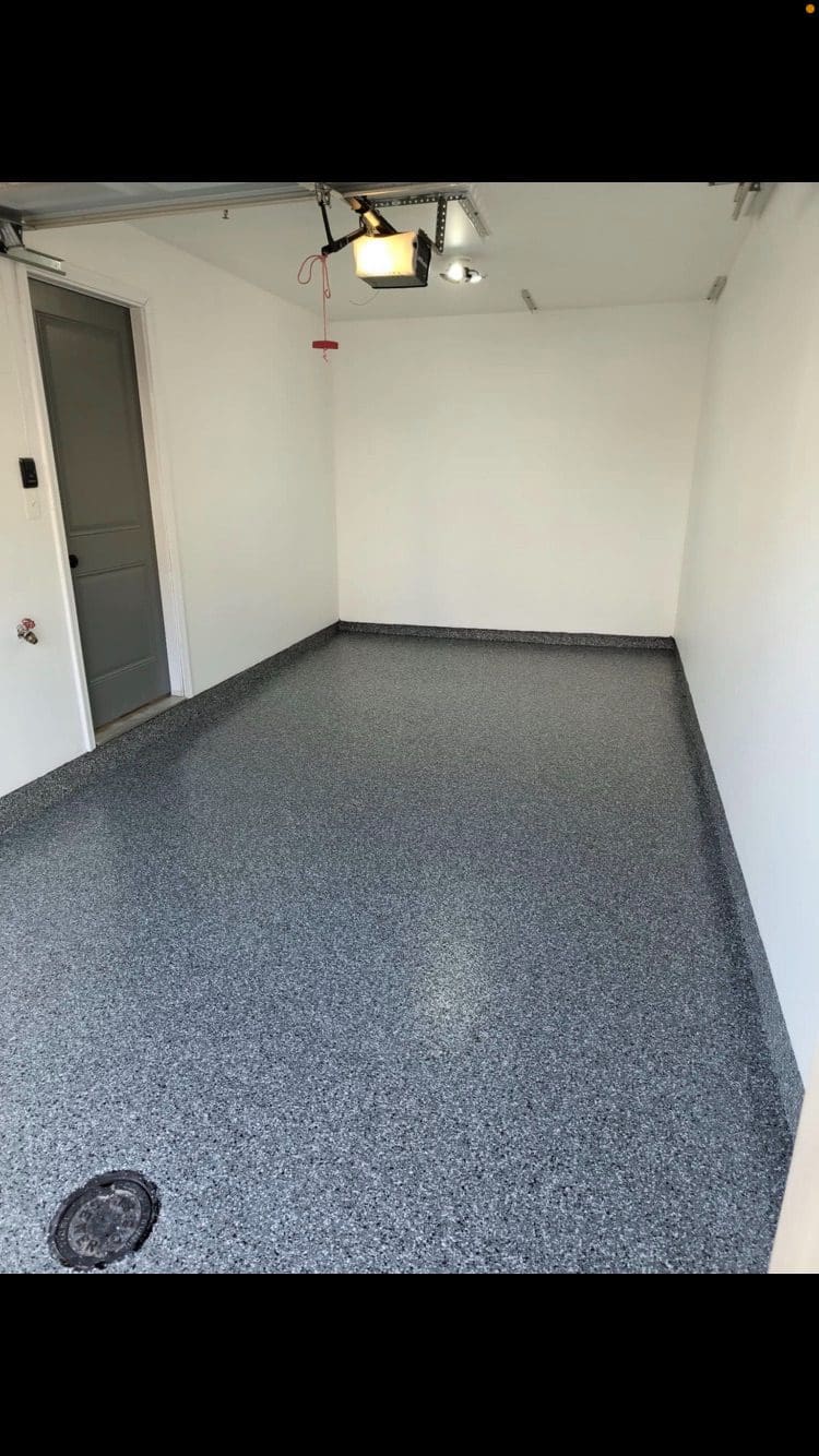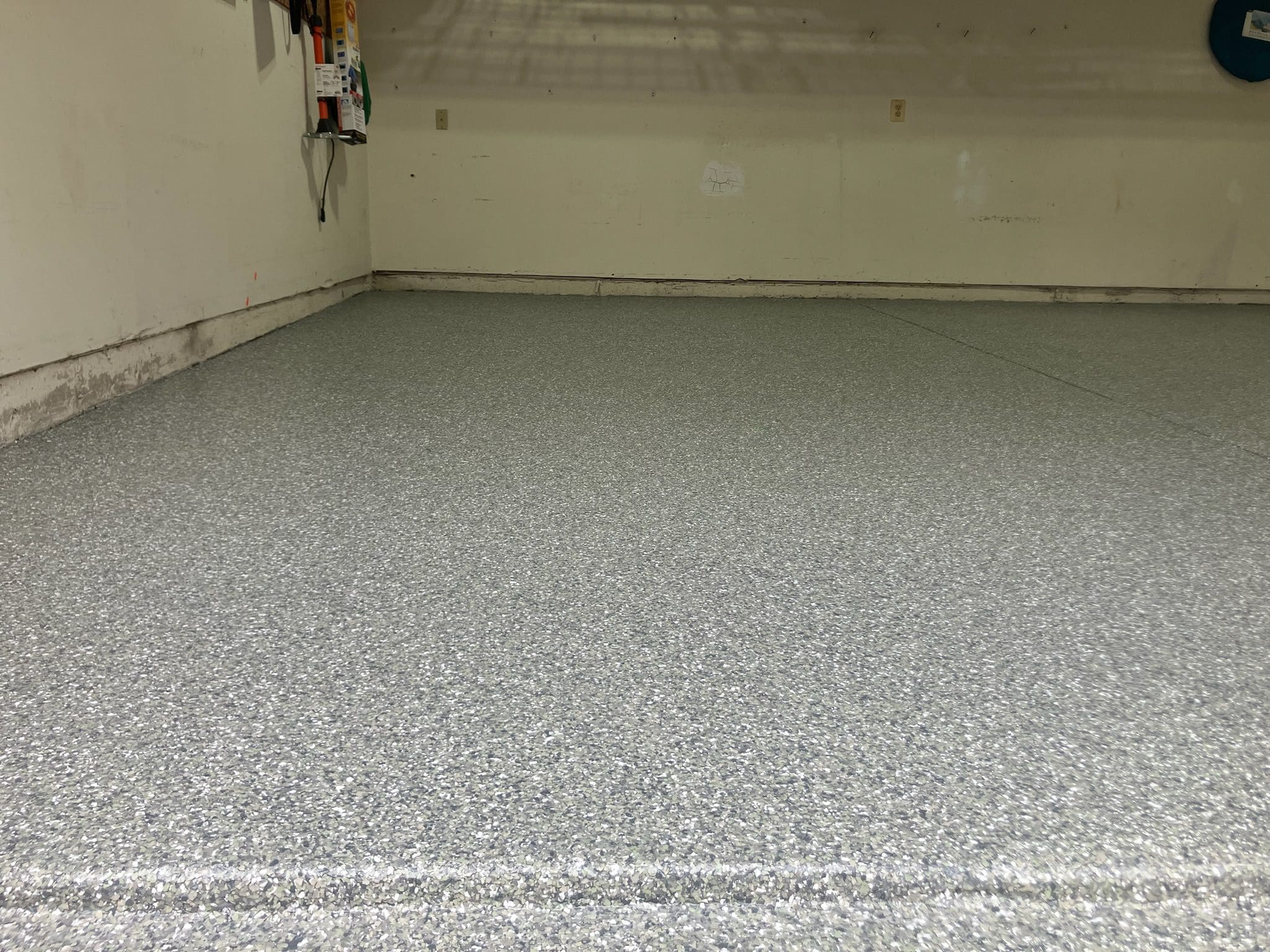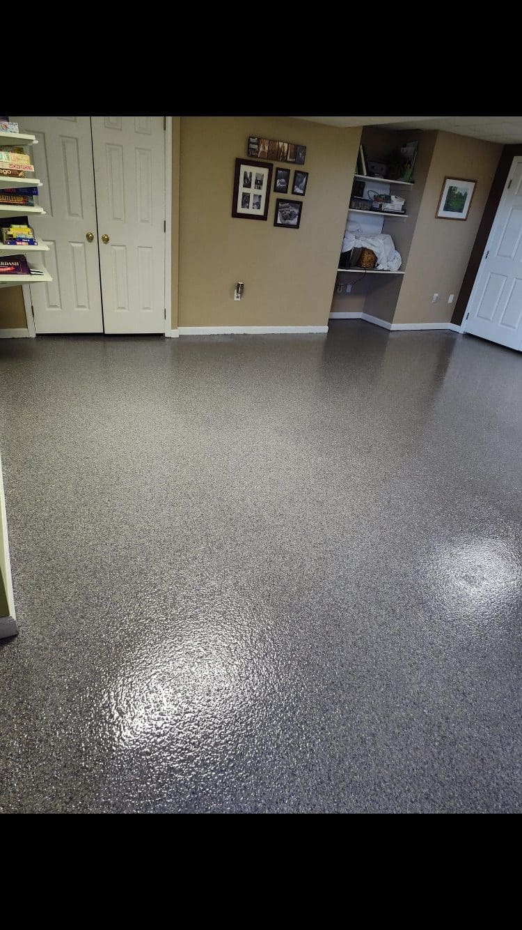 1/4" neutral gray flake with 6" cove storage room