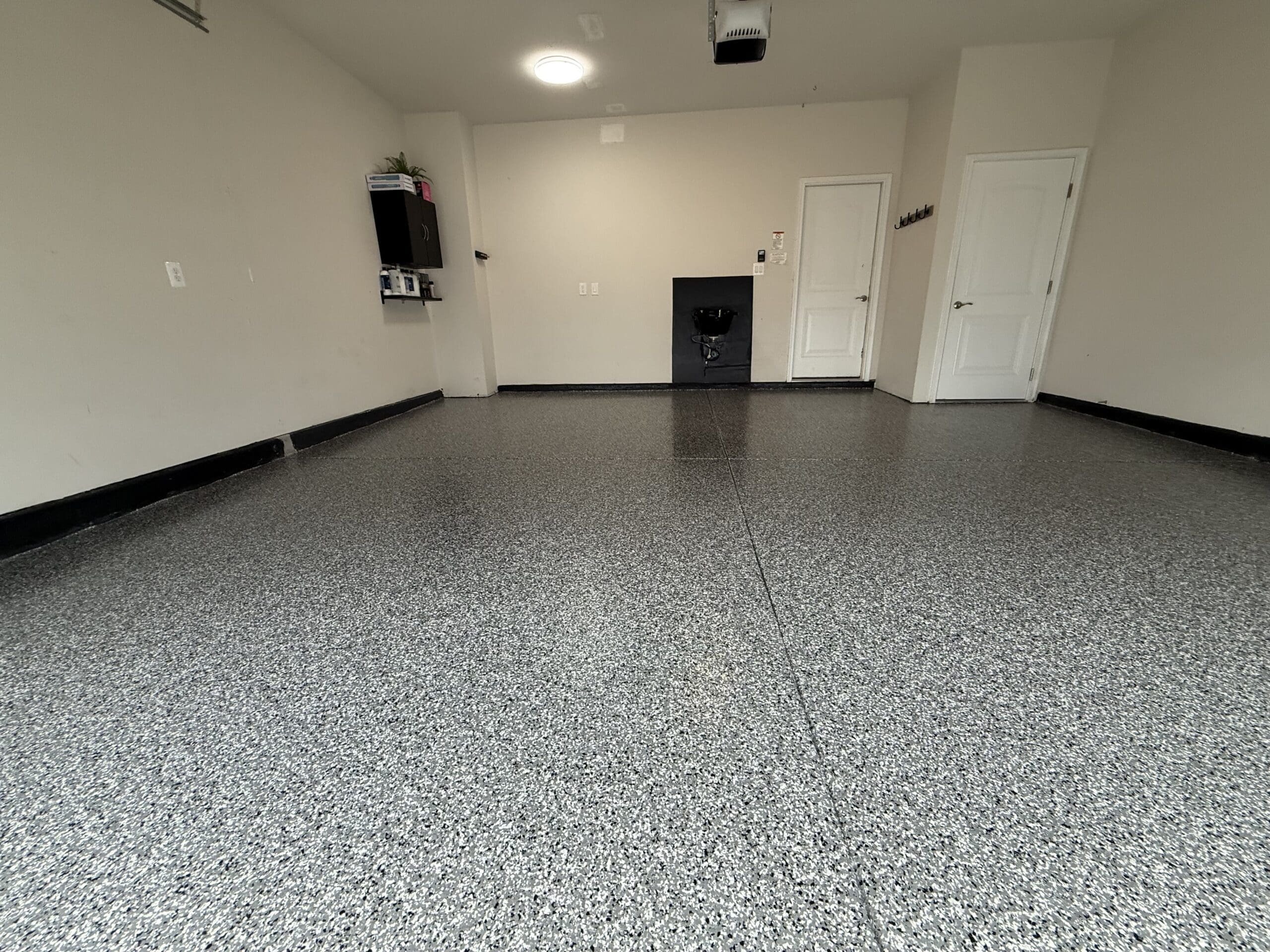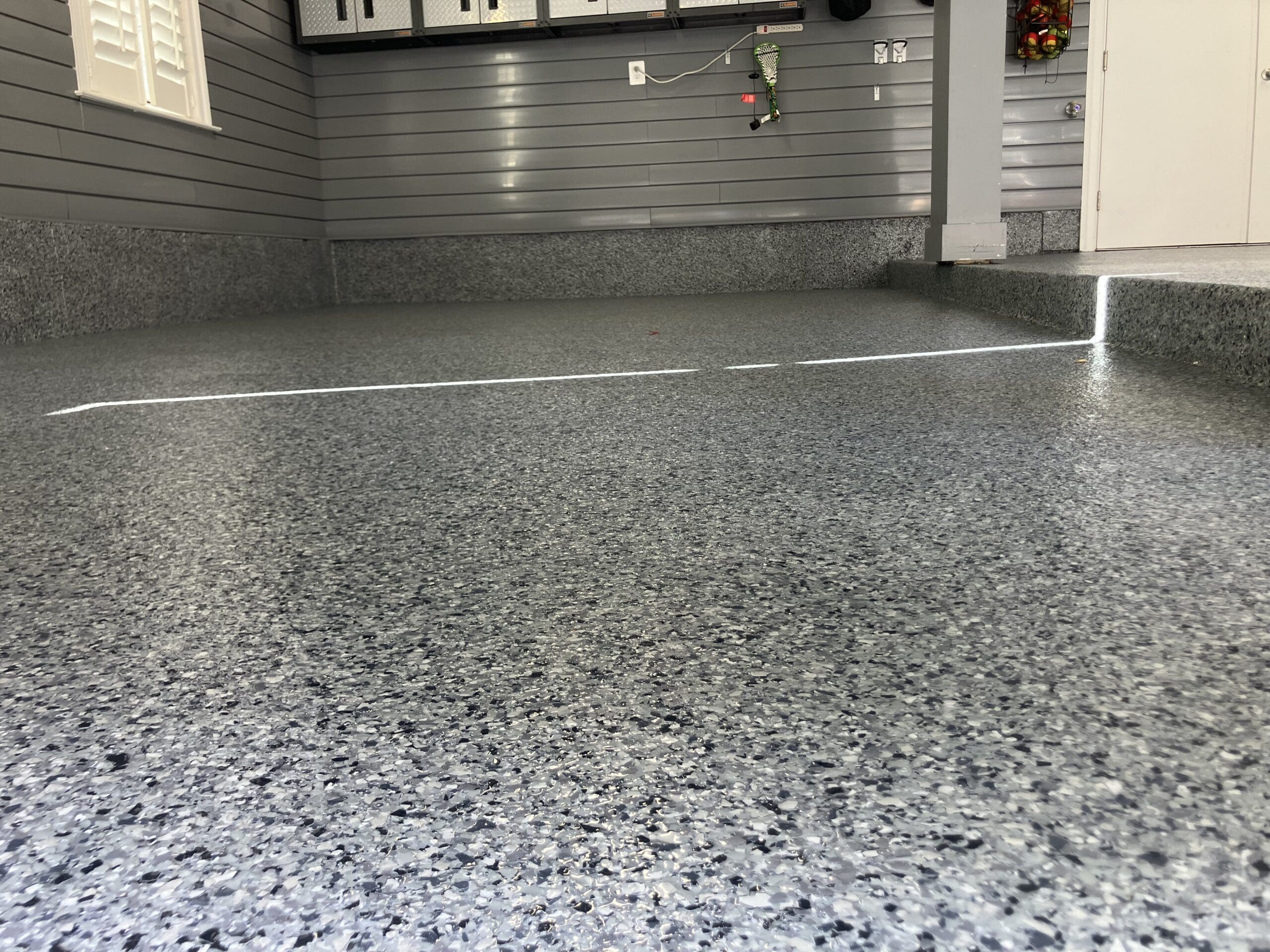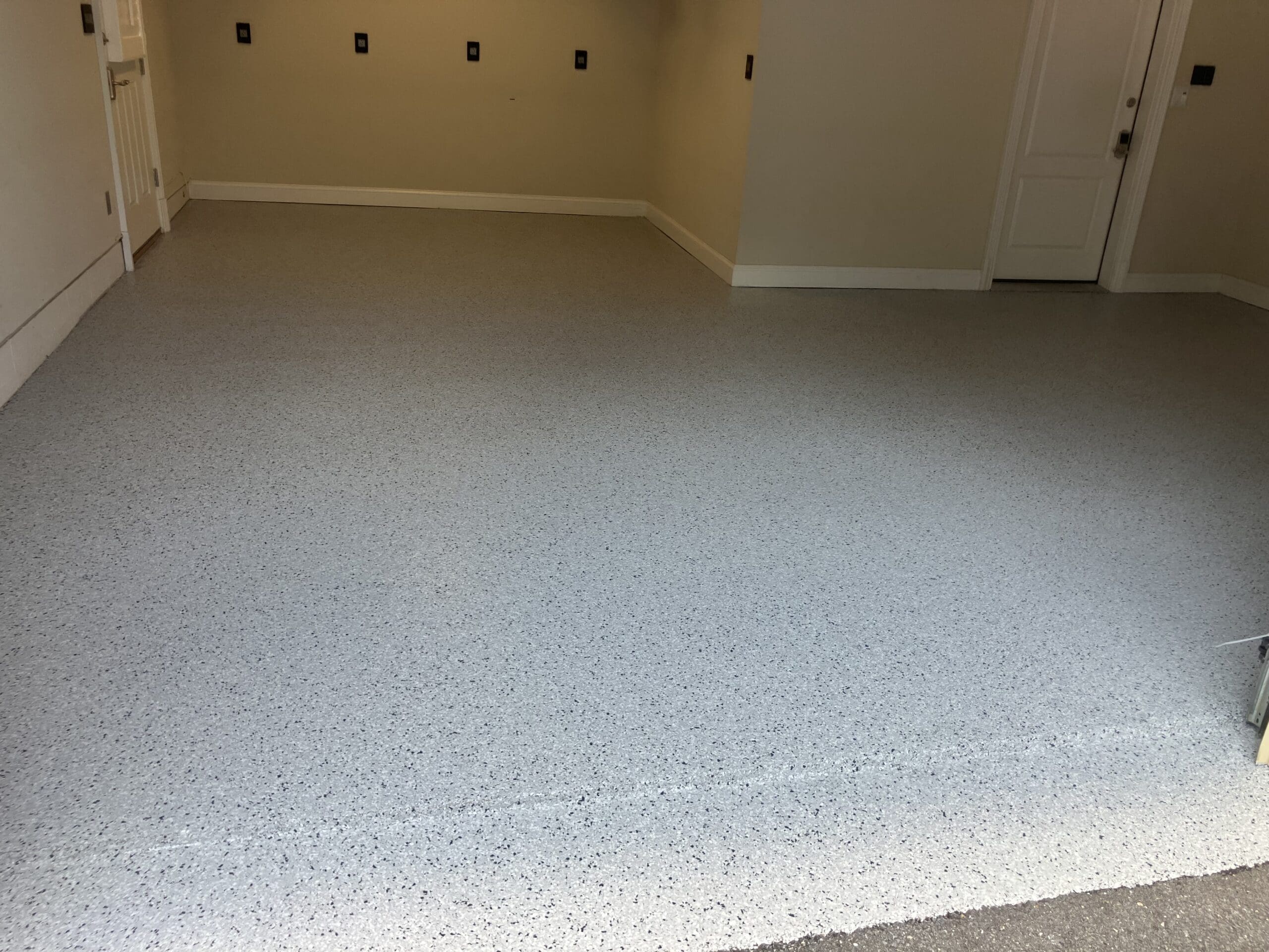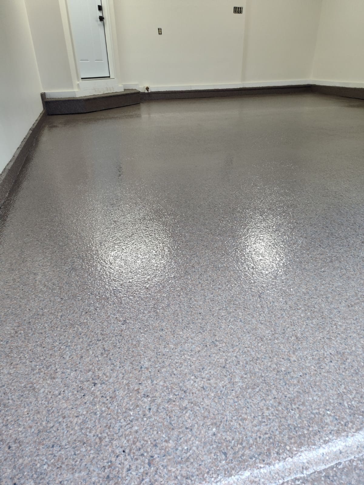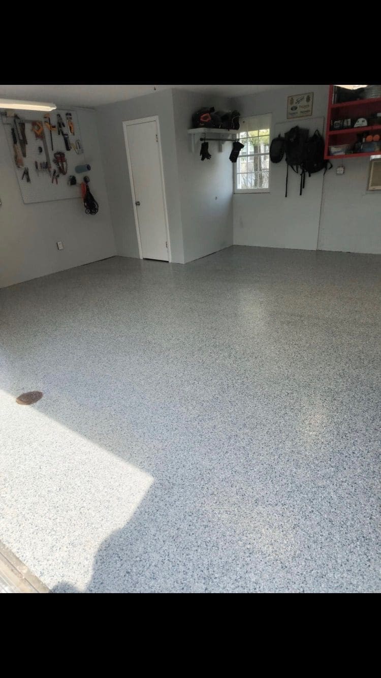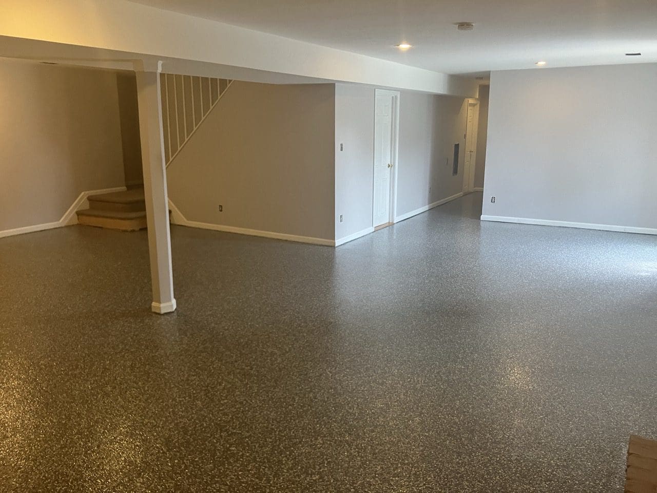 1/4" neutral gray flake with 6" cove storage room