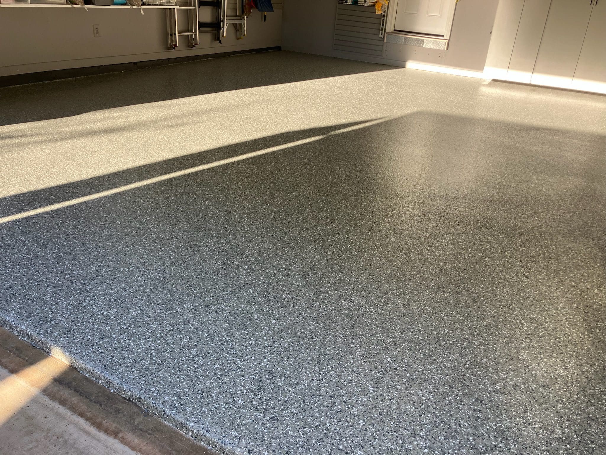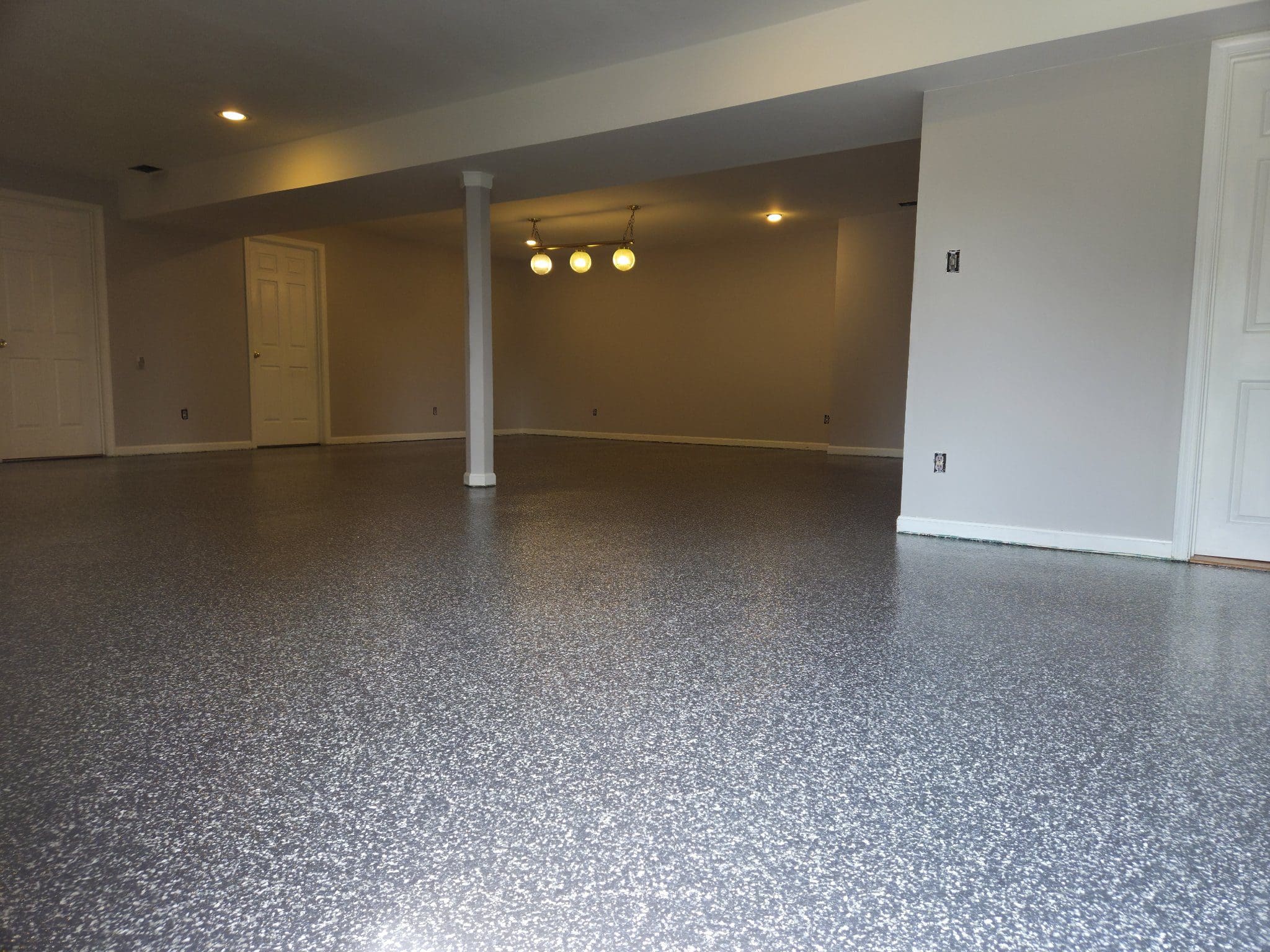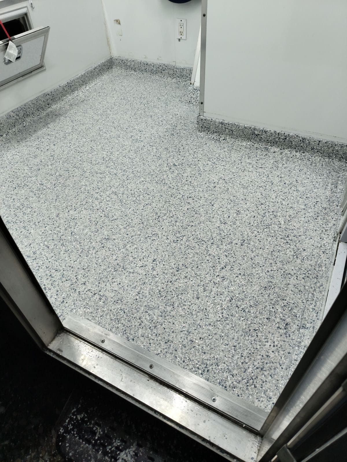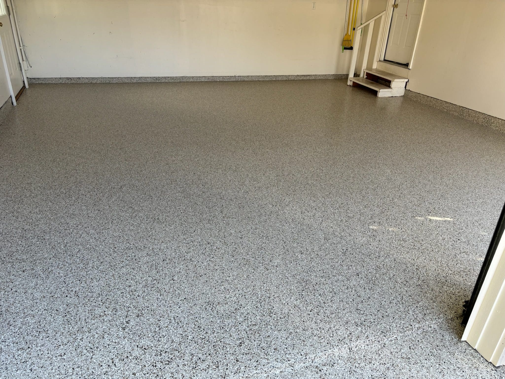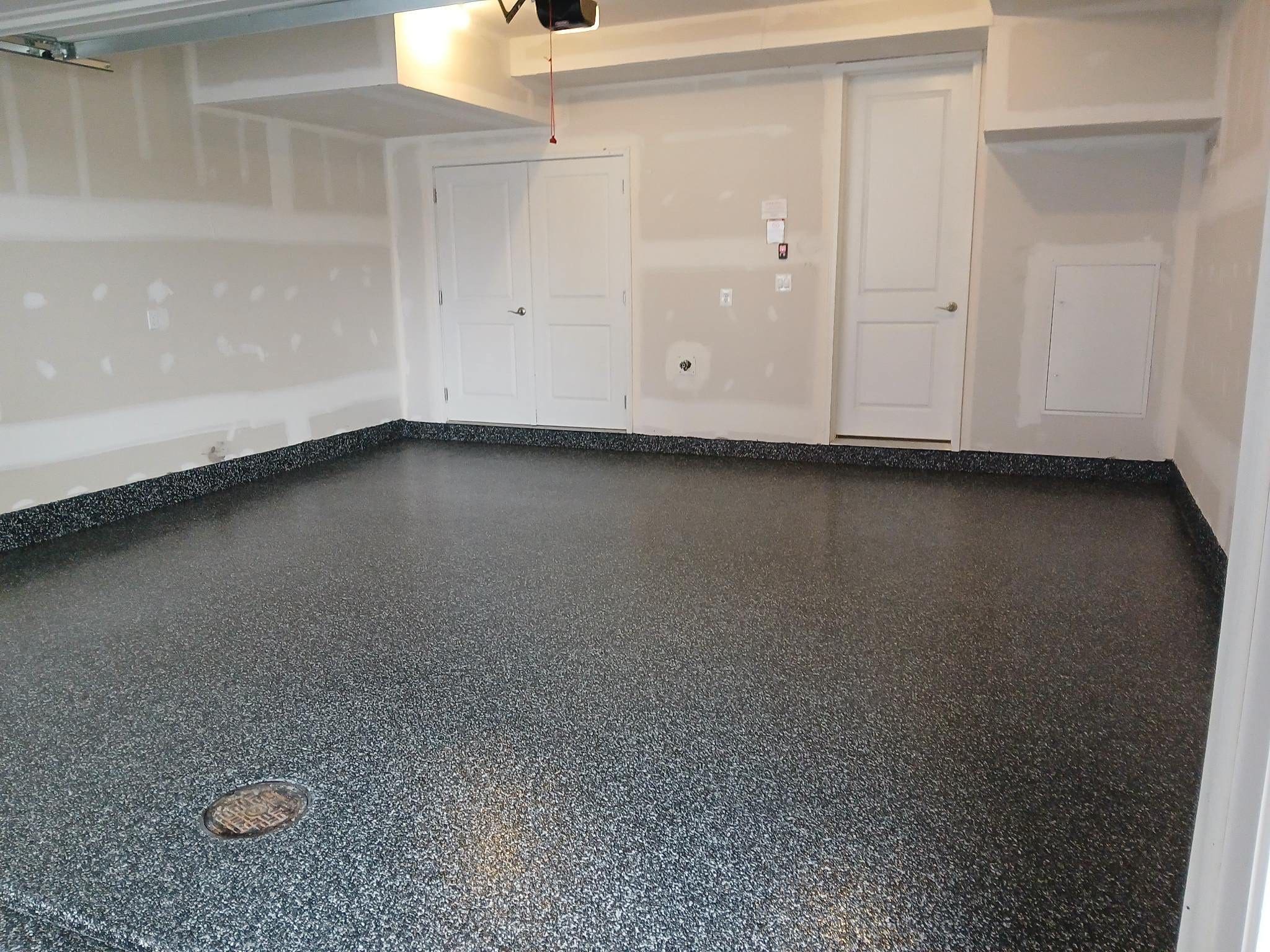 1/4" neutral gray flake with 6" cove storage room