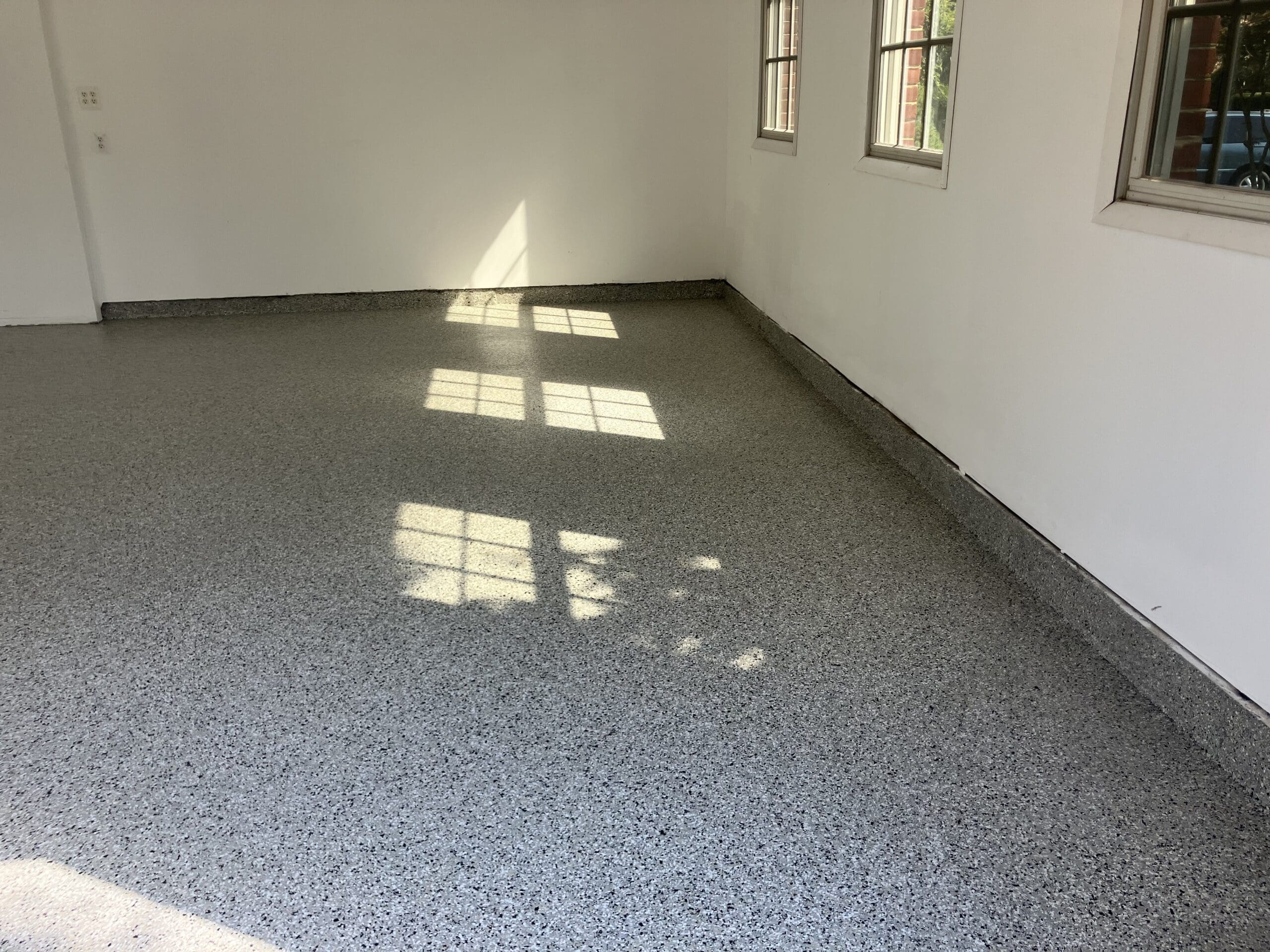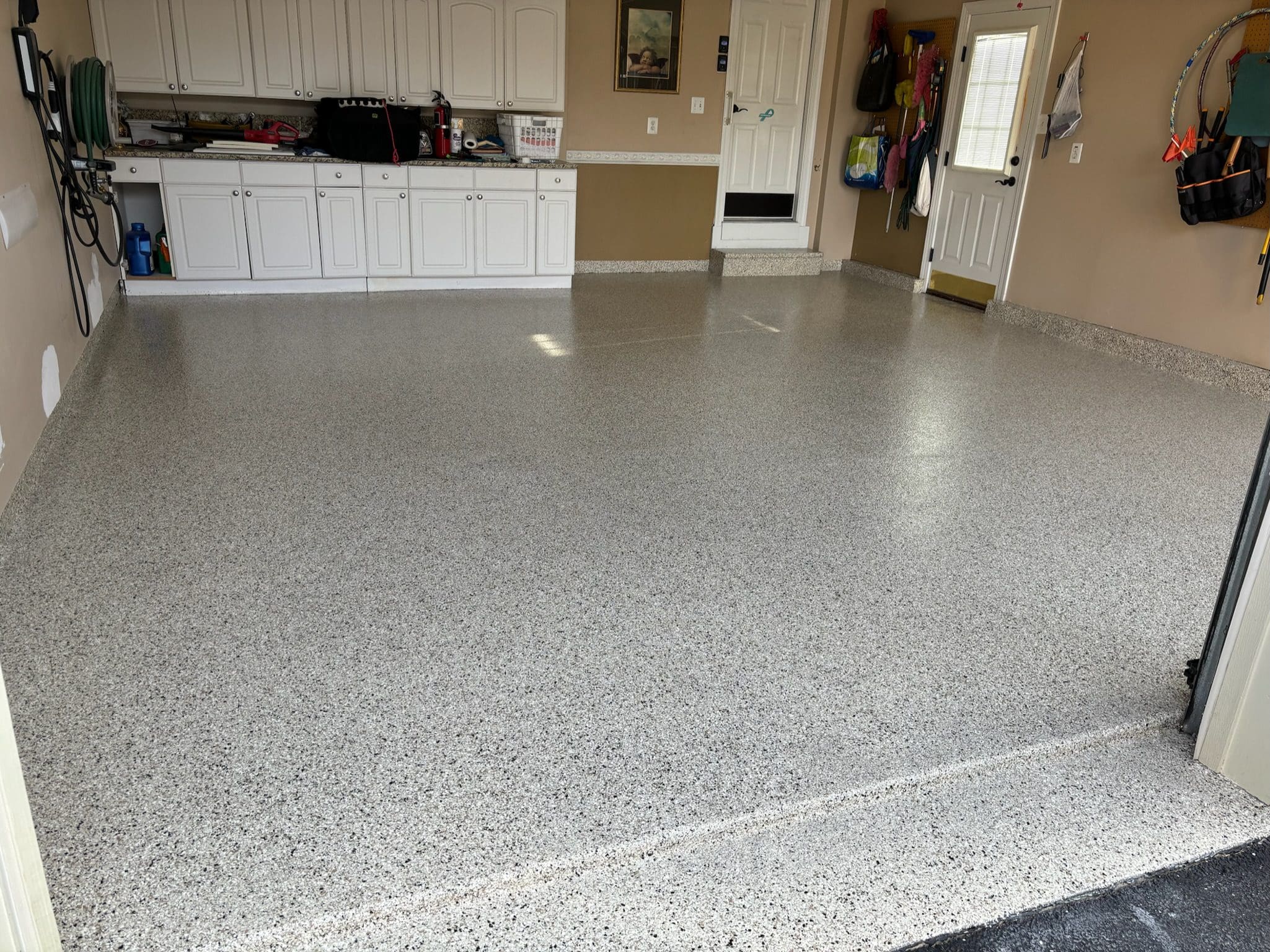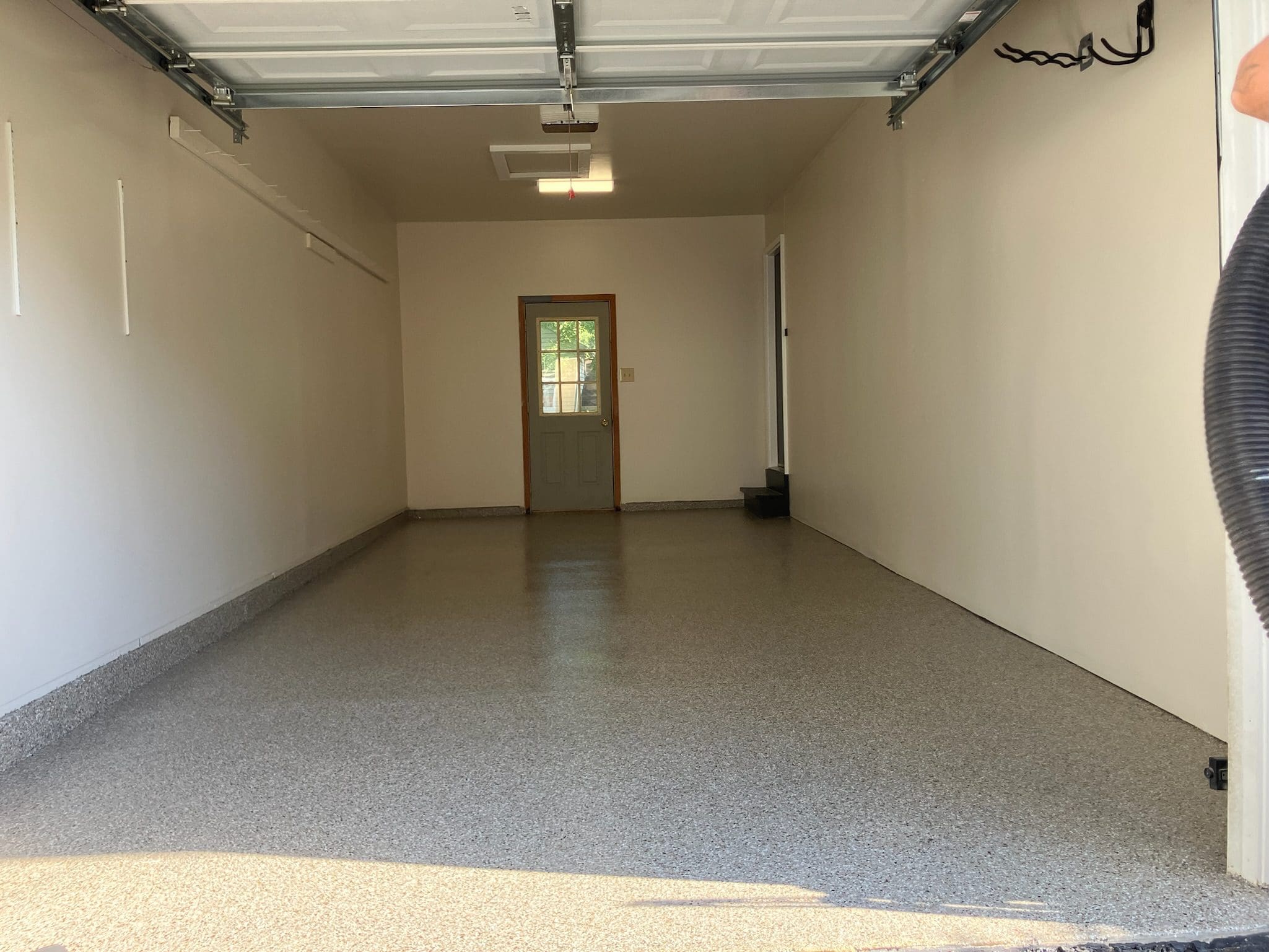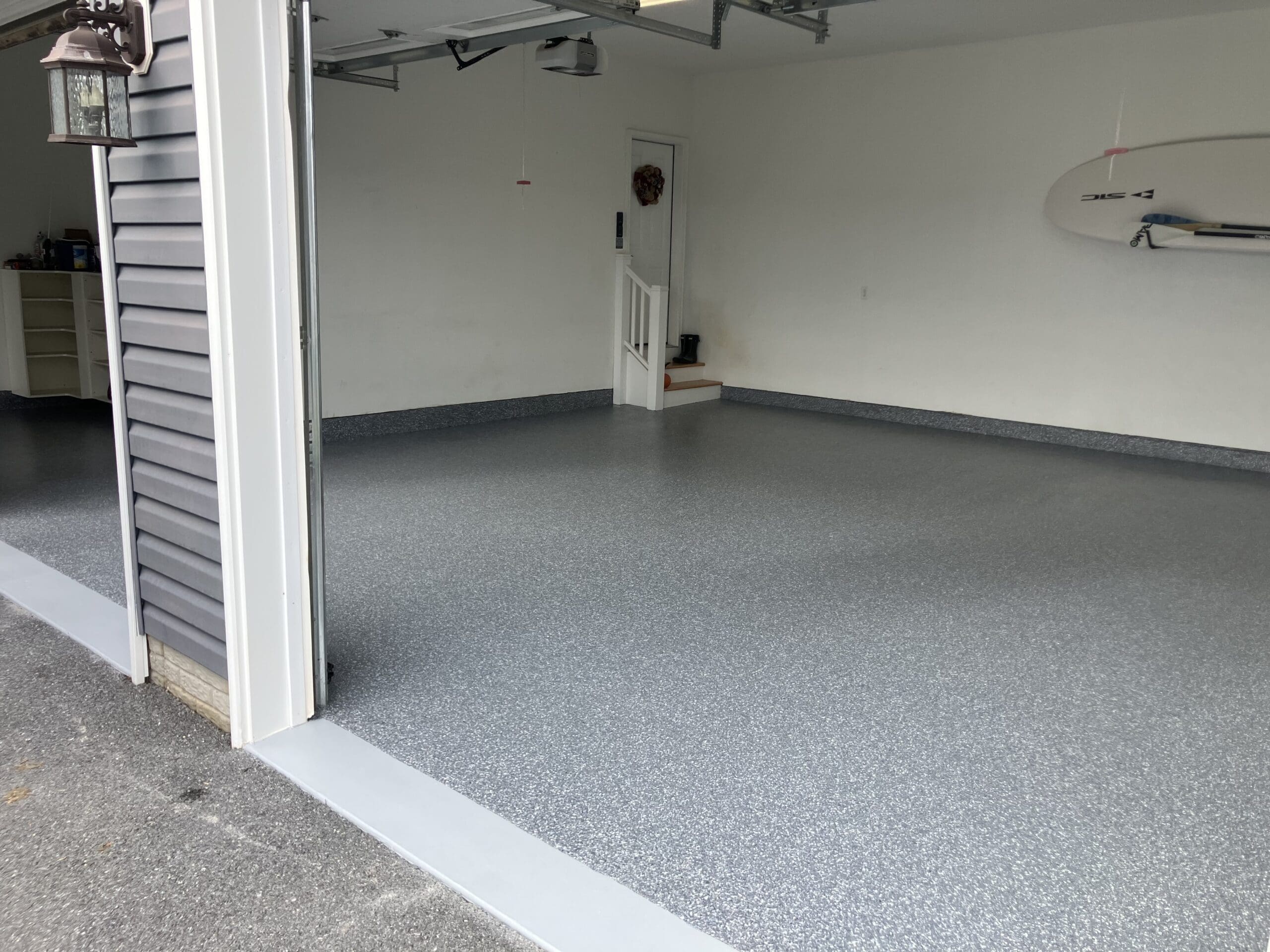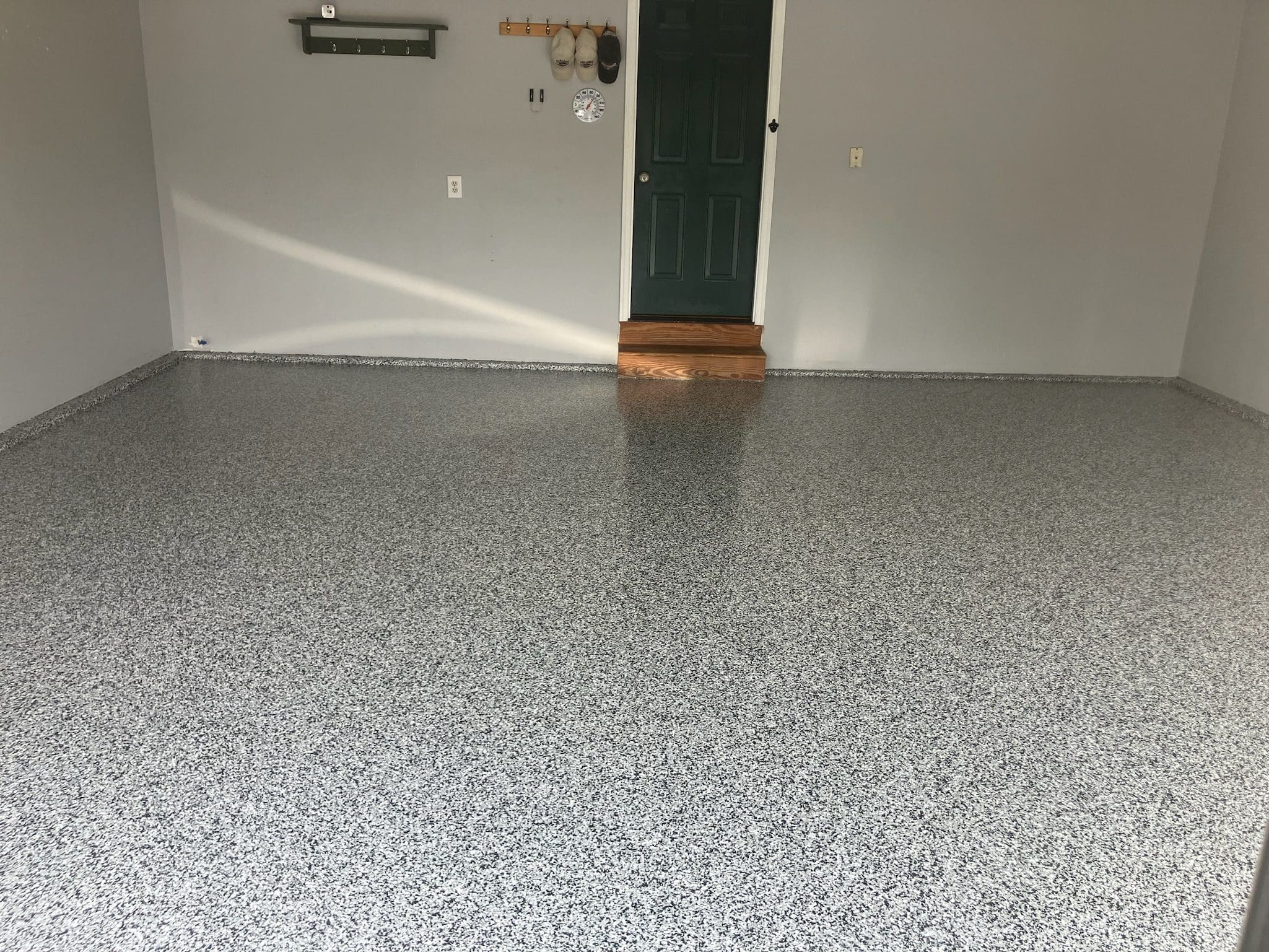 1/4" neutral gray flake with 6" cove storage room