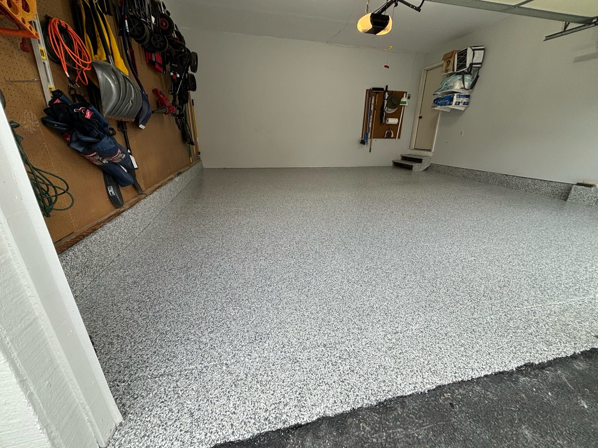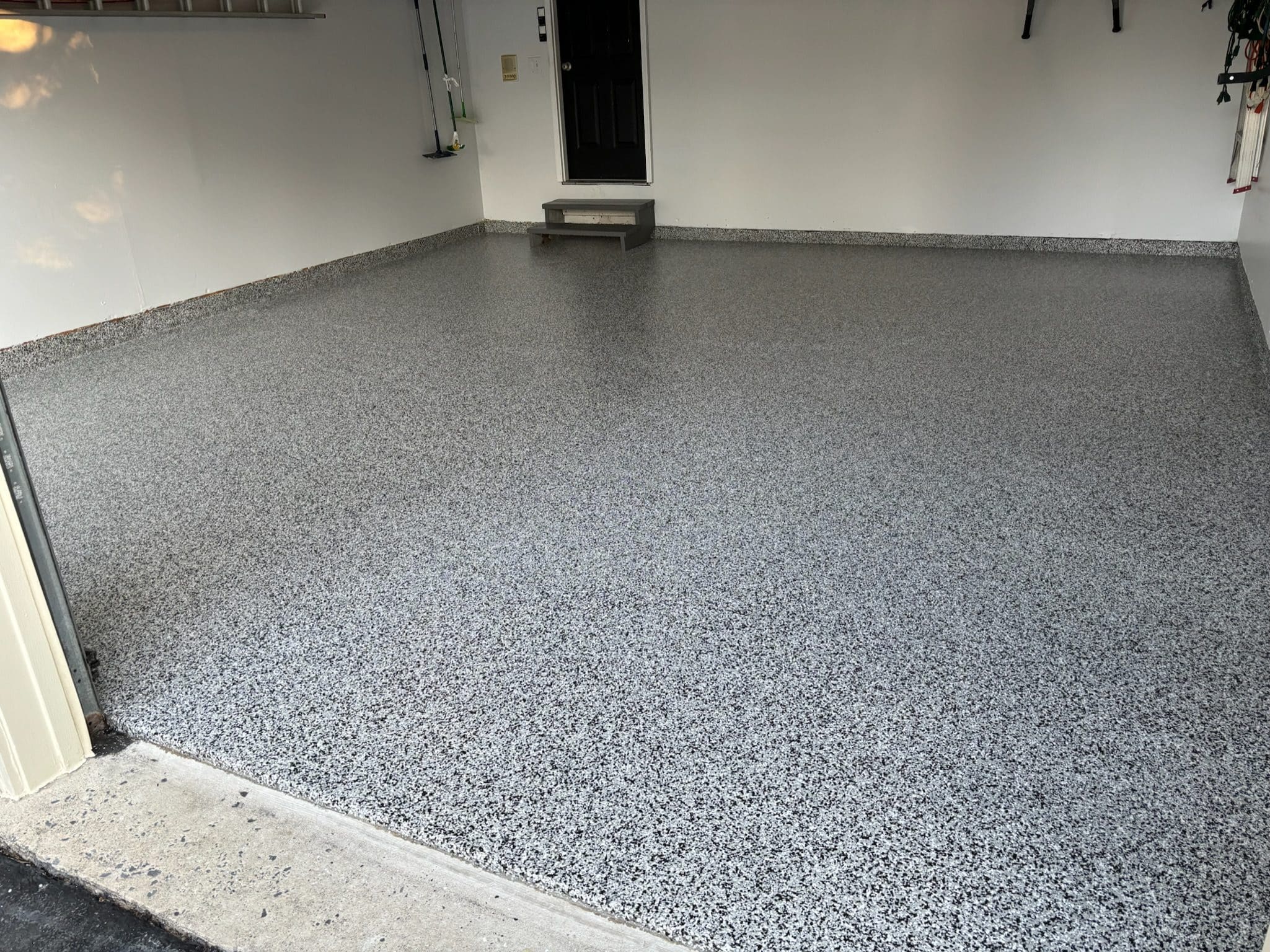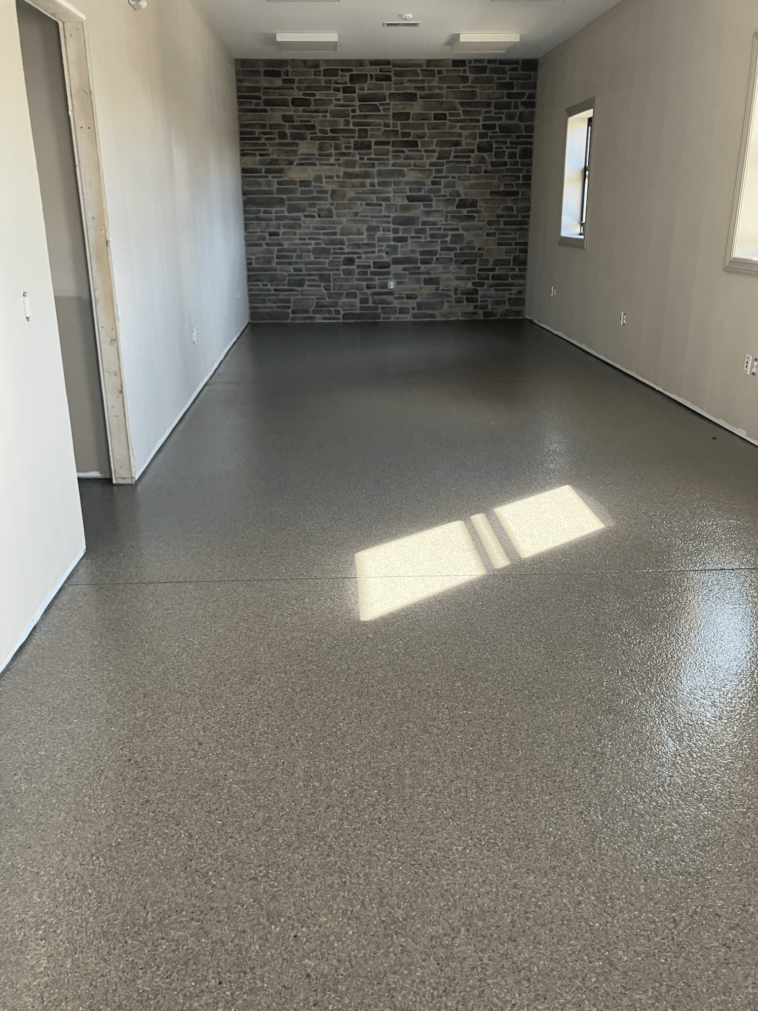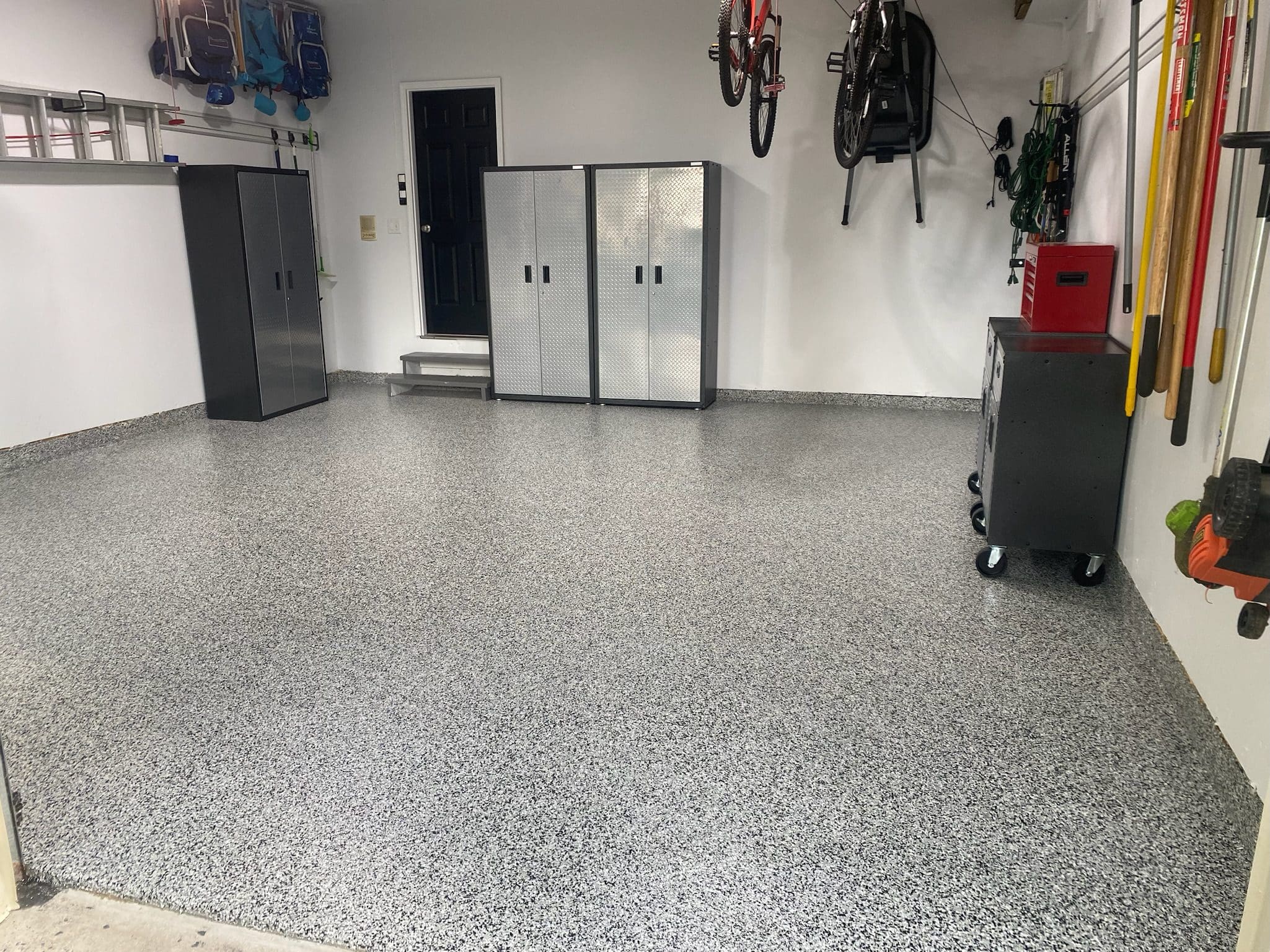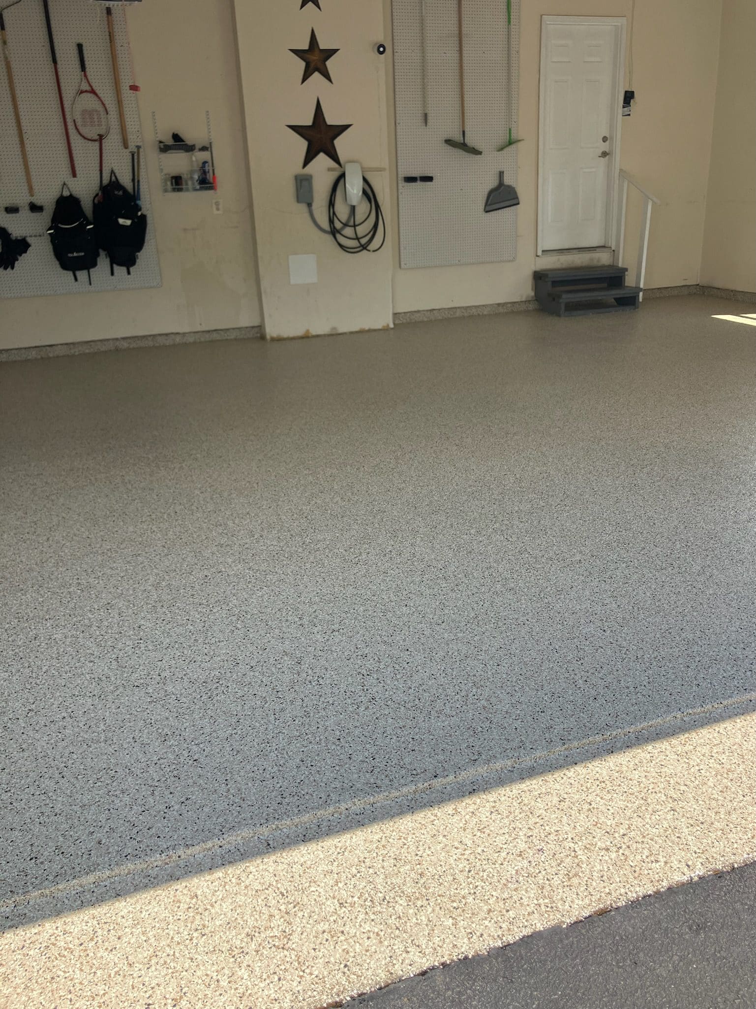 1/4" neutral gray flake with 6" cove storage room