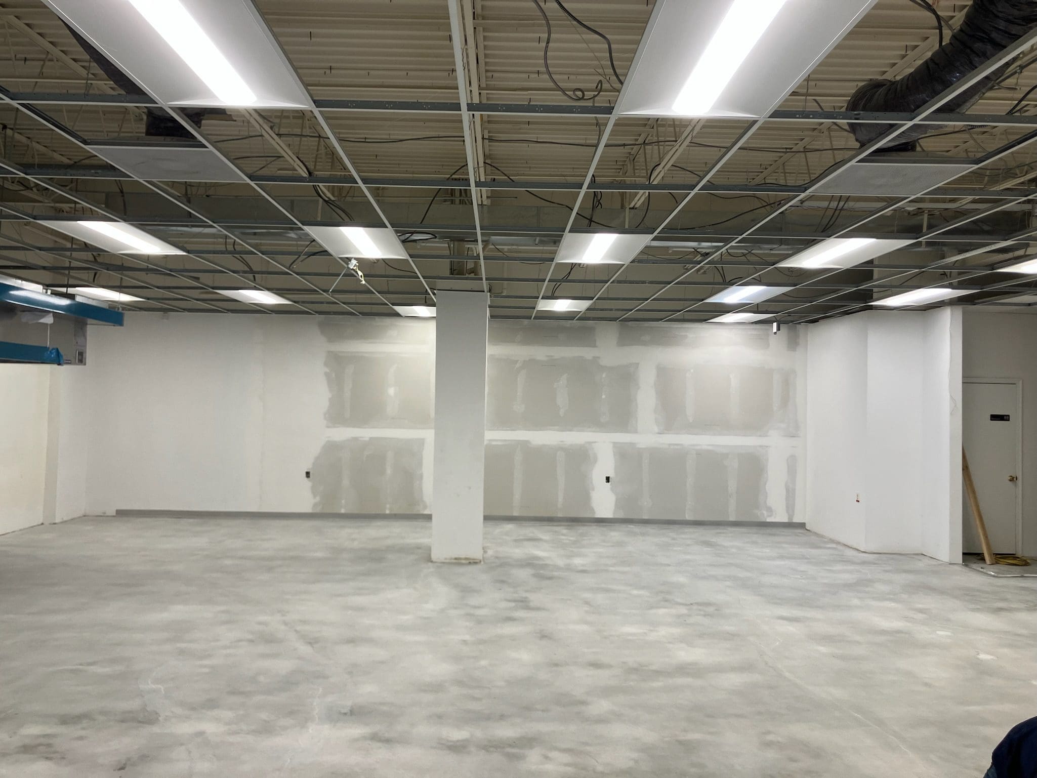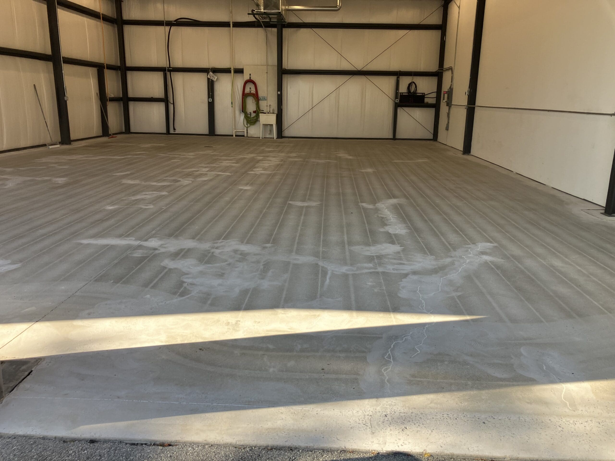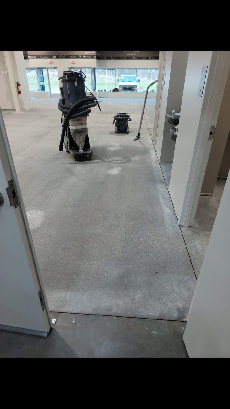 Shotblasted and patched floor, ready for a moisture vapor barrier