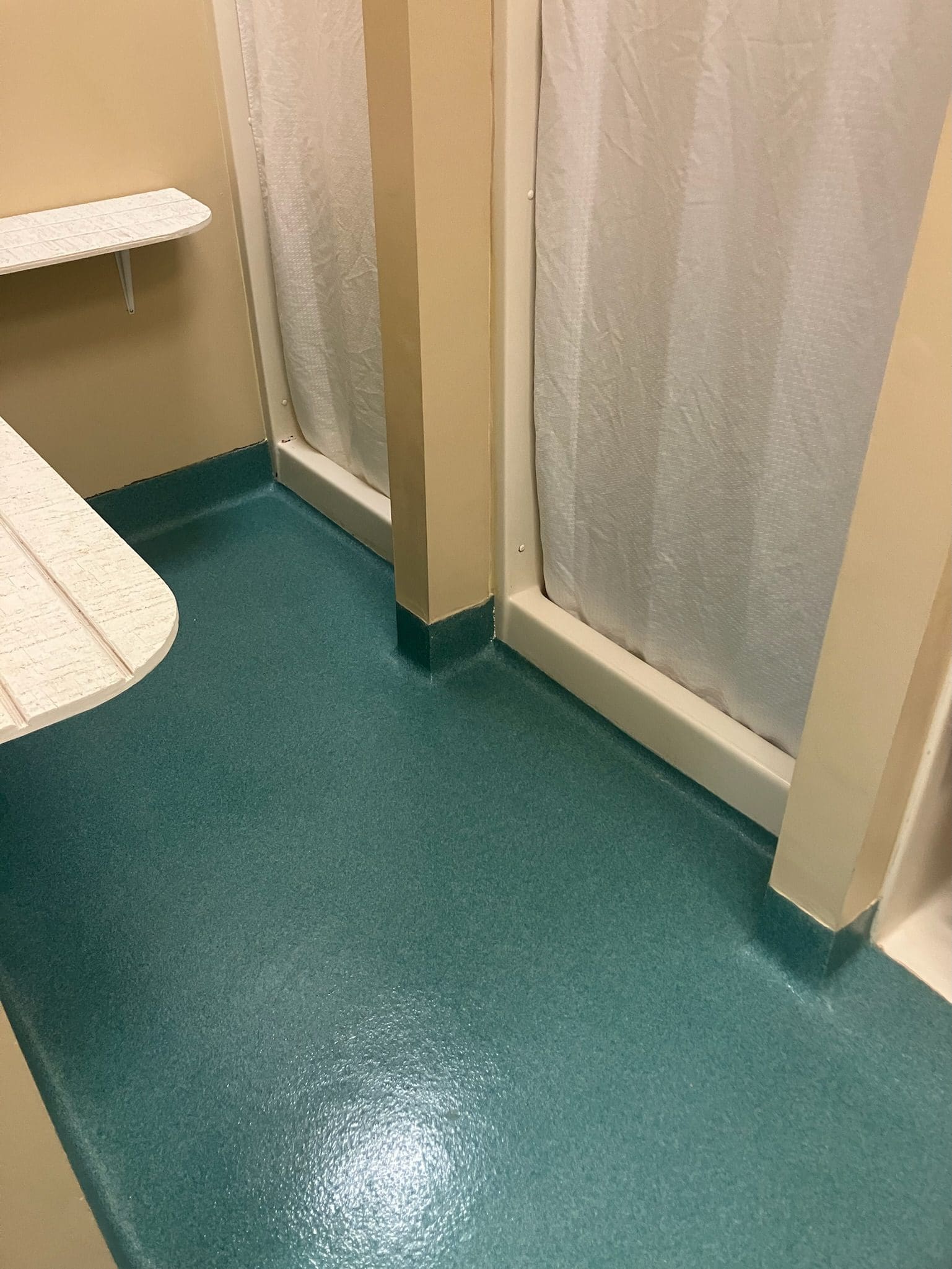 Teal blue duraflex quartz bathroom for camp retreat
