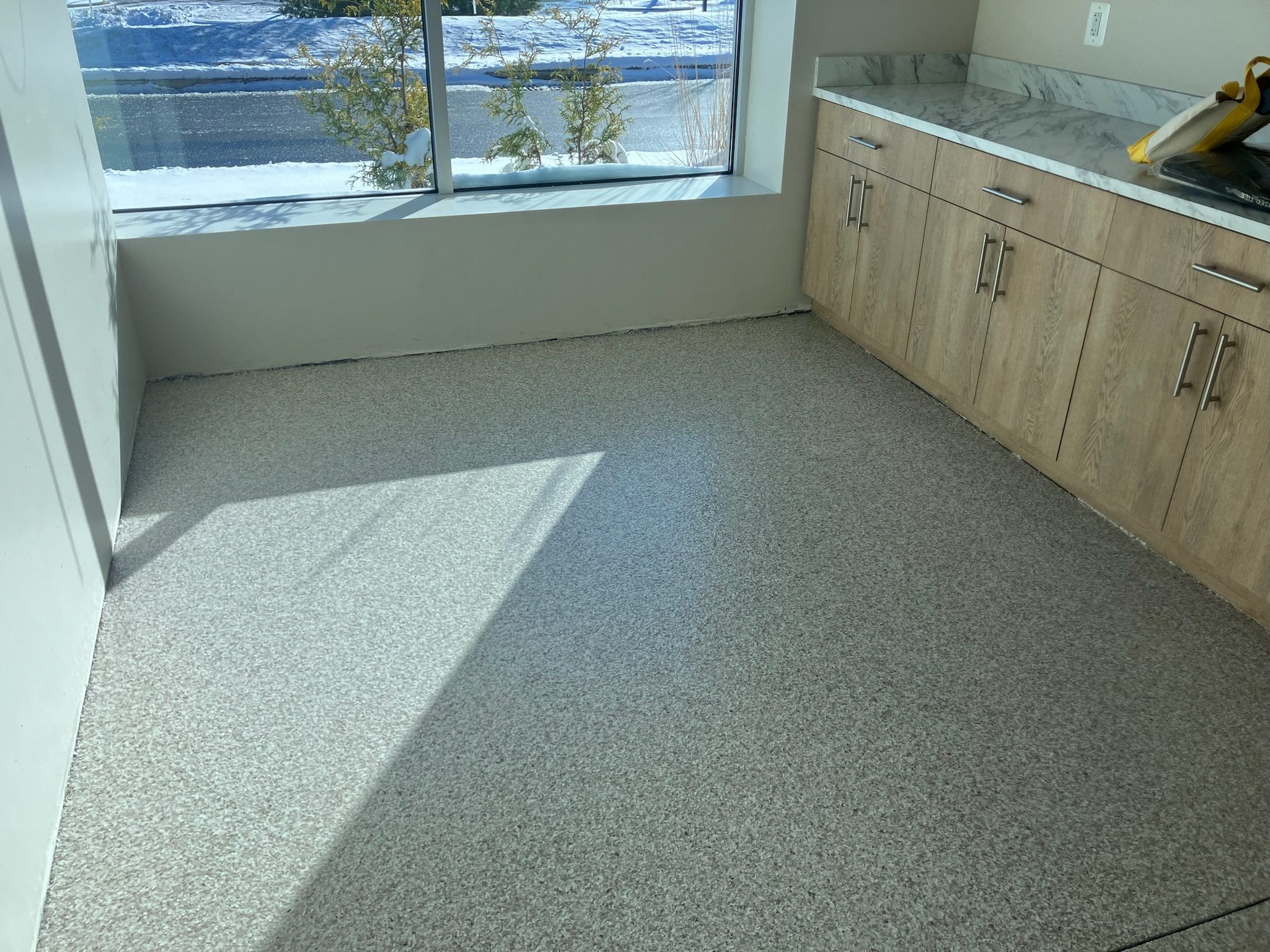 Quartz Double Broadcast with Troweled Cove Base utility Closet