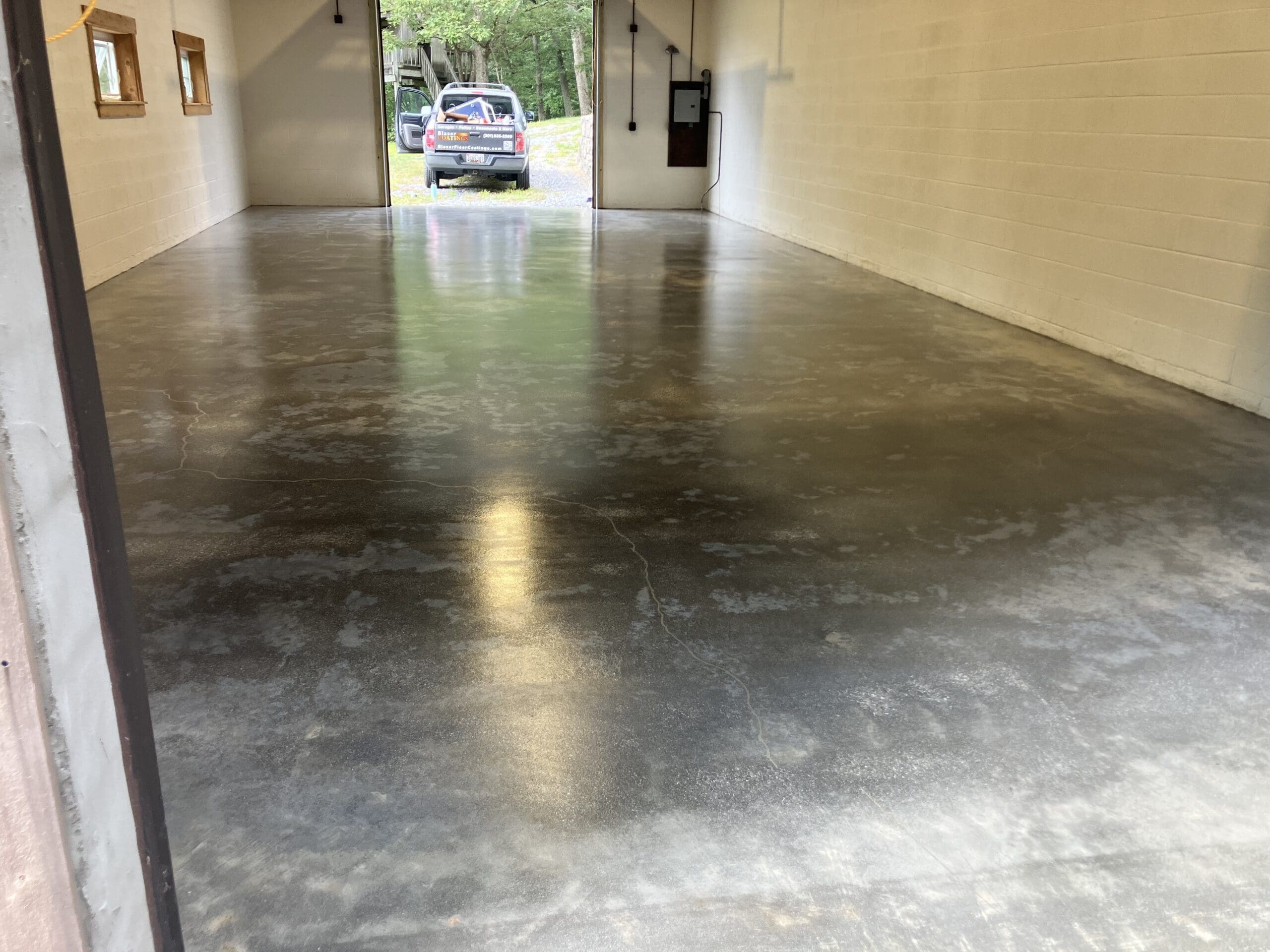 Solid color epoxy moisture mitigation installed in premier autoworks Frederick
